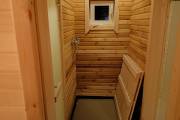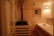Планировка тут весьма удачная: баня словно разделена на две части – большая комната отдыха и банные помещения (сауна, душ, котельная).