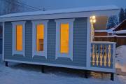 Такую баню можно построить как по каркасной технологии с утеплением, так и из бруса: сухого или клееного. Оба варианта хороши.