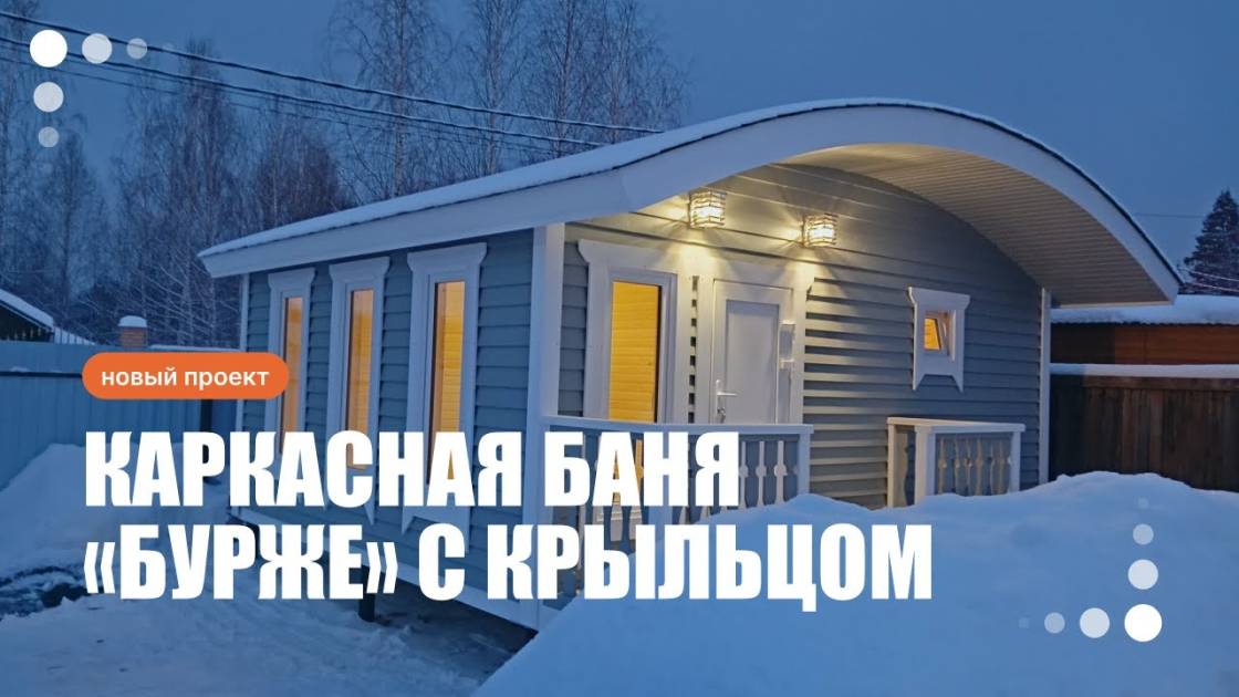 Немного модифицировали планировку для клиента и решили добавить в каталог в качестве нового проекта. Это каркасная баня «Бурже» размером 5 на 5,3 метра. Вместо полноценной террасы клиент захотел сделать вот такое огороженное перилами крылечко. Смотрится ну очень прянично.