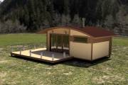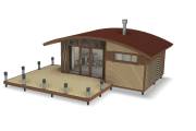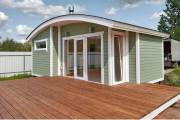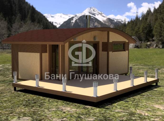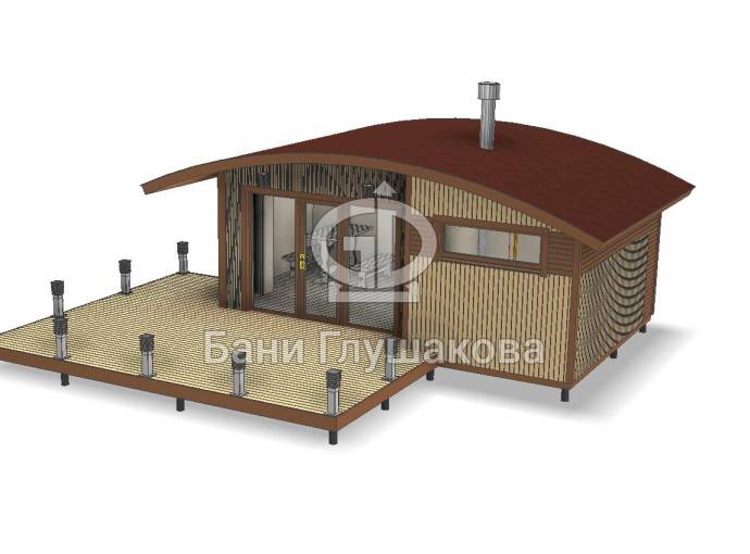 Во время работы над очередным интересным объектом родилась идея объединить две наших топовых линейки бань: «Бурже» и «Суоми». Новый проект в наследство от «Бурже» получил узнаваемую округлую крышу, а от «Суоми» — панорамное остекление и технологичную наружную отделку планкеном.