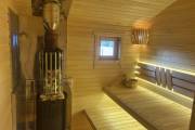 Можно установить светильник потолочный в комнате отдыха, ссылка на все фото тут, помещается в бани бочки увеличенного диаметра, в Буханочки и Бурже, беседки