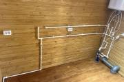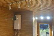 Входит в стоимость. Включает светильники в каждом помещении, вводный автомат, негорючий провод в парную, розетка в комнате отдыха (в банях-бочках розетка устанавливается по требованию).