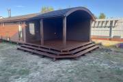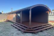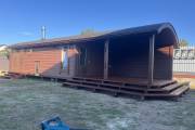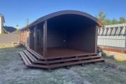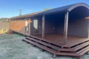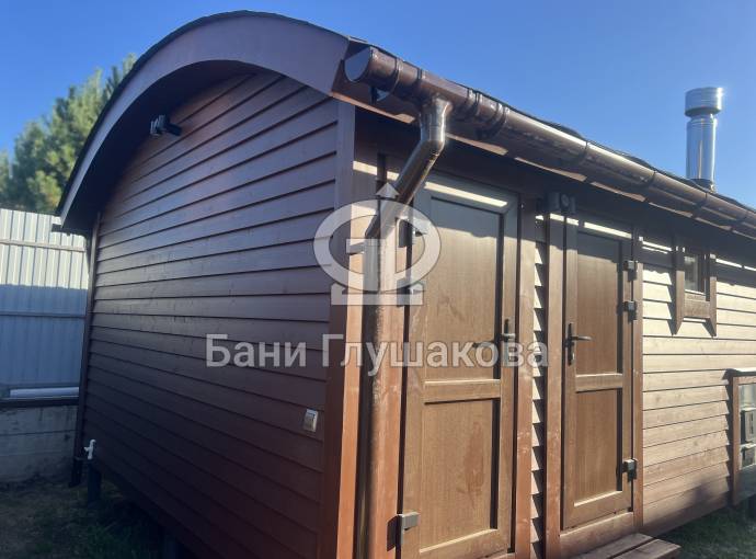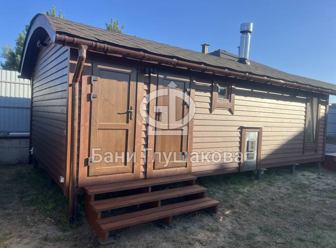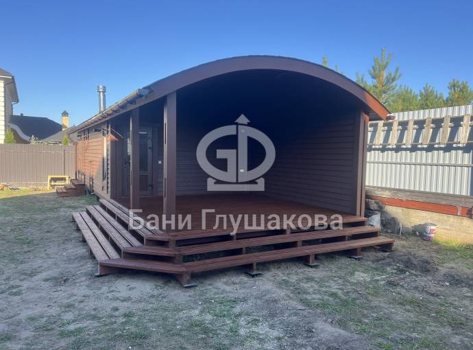 • современная округлая крыша и высокие окна создают стильный внешний вид и наполняют баню светом;
