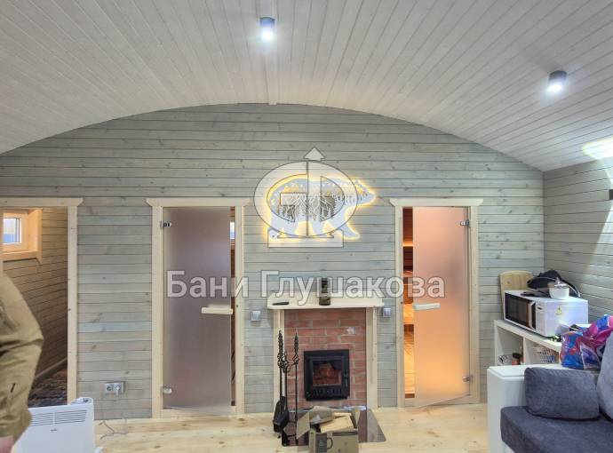 У нас появилась новая опция: теперь можно заказать отделку парной осиновой термовагонкой. Как это выглядит на видео.