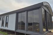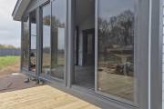 Особенность этой версии — застеклённая терраса, которая превращается в идеальное место для отдыха в любое время года. Благодаря панорамному окну здесь много света и воздуха — летом это почти веранда, а зимой тёплое продолжение дома.