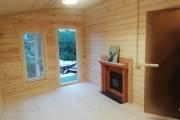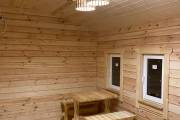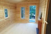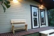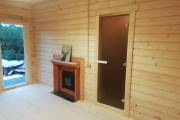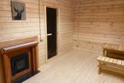Планировка вполне себе позволяет использовать эту баню в качестве дачного домика. Здесь есть большая комната отдыха, сауна, душ и ещё одно отдельное помещение — некоторые владельцы размещают здесь санузел, но в случае этого заказа тут будет располагаться шкаф для халатов и полотенец.