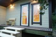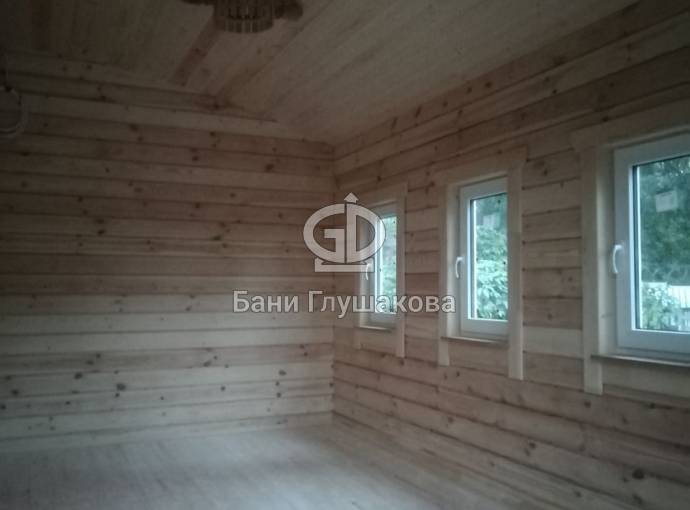 Особой красоты этой бане добавляет галерея окон в комнате отдыха. Установлены классические пластиковые стеклопакеты (кстати, посмотрите видеообзор — там наглядно показано, насколько качественно мы работаем с окнами). Дополняет эту красоту прозрачная дверь-стеклопакет на входе и матовые двери в банные помещения.