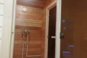 Можно установить один или более светильник у входной двери снаружи, подробнее по ссылке, в комплект входит покраска его в цвет окантовки бани, подключение на отдельный выключатель, светодиодная лампа. Стоимость 1700 рублей за штуку