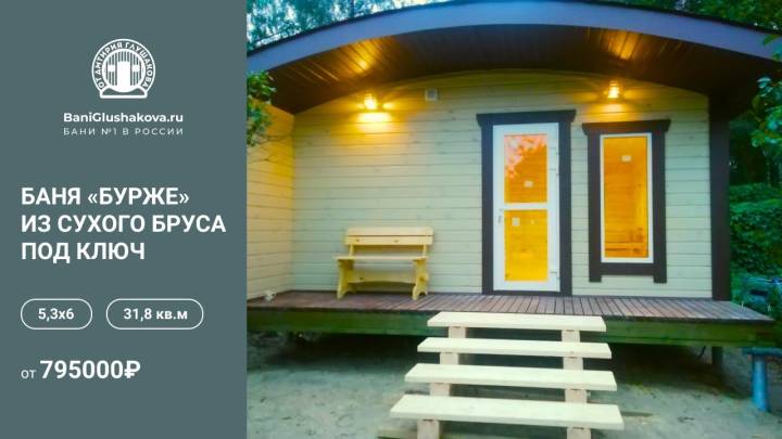 Самый красивый проект бани в нашем каталоге — это, безусловно, «Бурже». Изначально линейка этих бань задумывалась как перевозная и каркасная, но со временем мы научились строить красивые бани из бруса с эффектным дизайном и увеличенного размера.