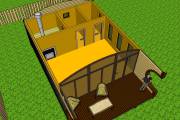 Строительство ведётся по каркасной технологии. Наружная отделка доской внахлёст «ёлочкой» или имитацией бруса. Изнутри обшивка бессучковой вагонкой.