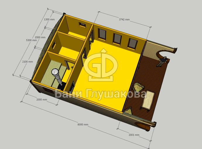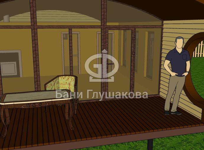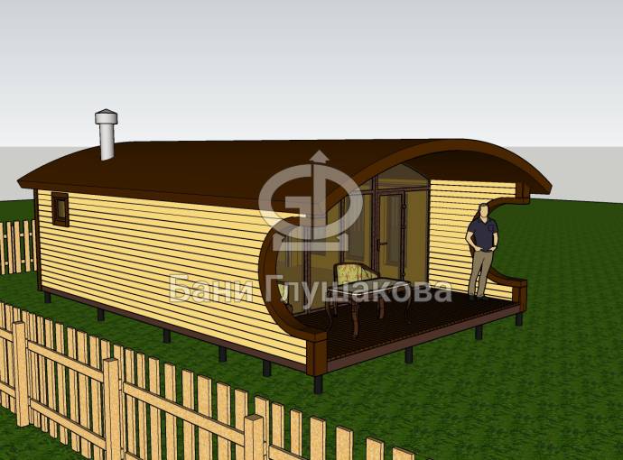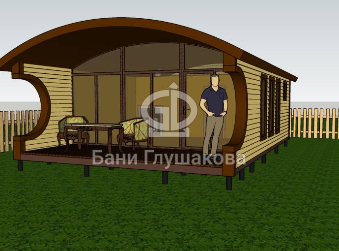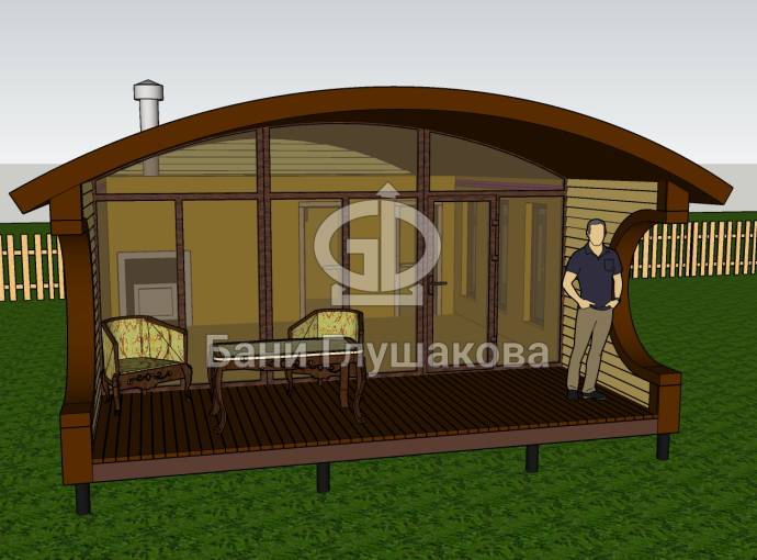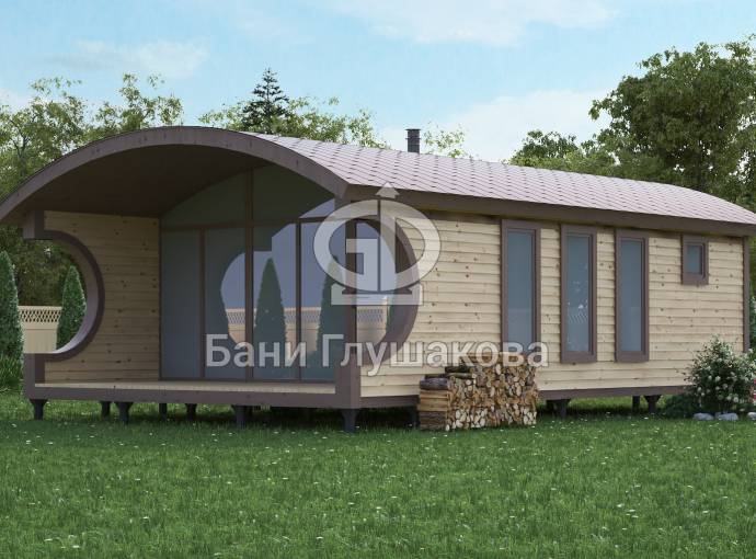 Баня «Бурже» 5,3х8м с панорамными окнами