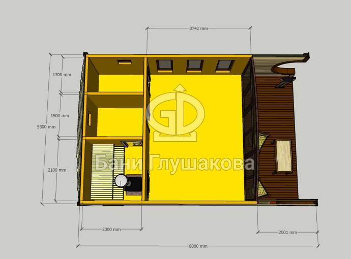 Размеры: 5,3х8 м