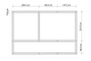 Делается из ряда досок, из трех штук высотой 145 мм, толщина в три доски, общая ширина 140-150мм
