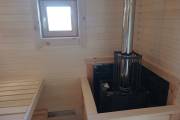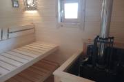 Эта модель отличается своей планировкой: здесь есть просторная комната отдыха, парная, моечное помещение и душ.