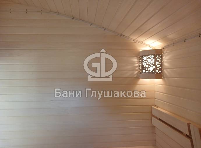 Можно установить светильник потолочный в комнате отдыха, ссылка на все фото тут, помещается в бани бочки увеличенного диаметра, в Буханочки и Бурже, беседки