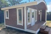 Именно эта модель — оптимальная по размеру из всей линейки каркасных бань «Бурже». Площадь практически 24 кв.м. Традиционно аккуратная каркасная сборка в новом дизайне. Баня получилась вместительной, красивой и очень уютной.
