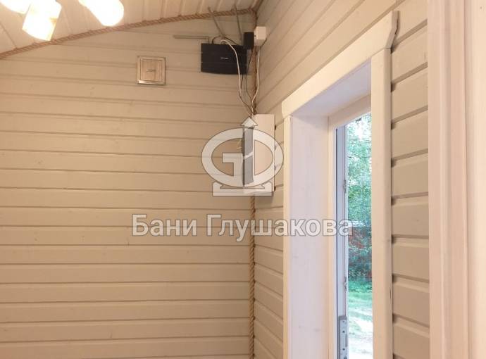 Входит в стоимость. Включает светильники в каждом помещении, вводный автомат, негорючий провод в парную, розетка в комнате отдыха (в банях-бочках розетка устанавливается по требованию).