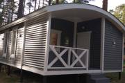 Каркасная баня «Бурже» 8х5,3м с маленькой террасой