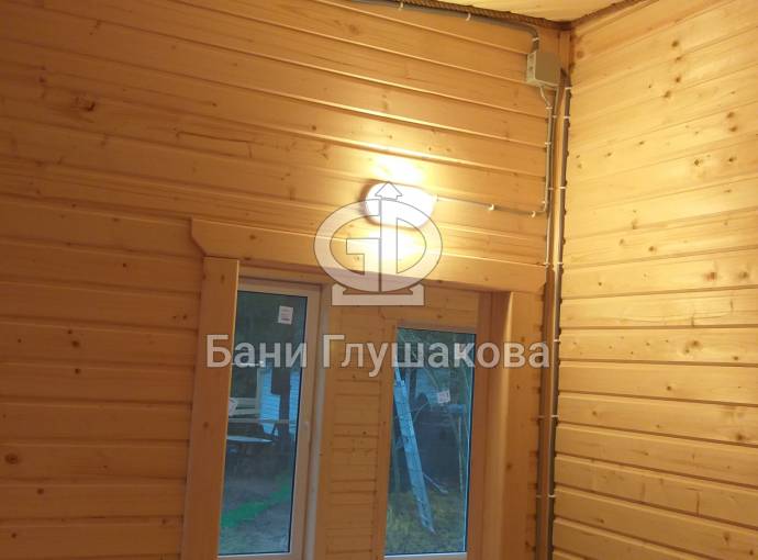 Входит в стоимость. Включает светильники в каждом помещении, вводный автомат, негорючий провод в парную, розетка в комнате отдыха (в банях-бочках розетка устанавливается по требованию).