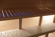 Установить красивые светильники, которые украсят вашу парную, ссылка на видео, а также можно сделать раздельное включение под полками и верхними светильниками ссылка на видео.