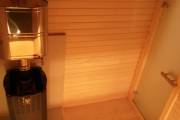 Можно установить один или более светильник у входной двери снаружи, подробнее по ссылке, в комплект входит покраска его в цвет окантовки бани, подключение на отдельный выключатель, светодиодная лампа. Стоимость 1700 рублей за штуку
