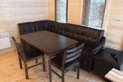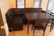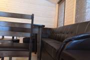 Массивная мебель нашего производства, основа из фанеры, верх из массива, стол и две скамейки, есть табуреты но их нужно оговаривать отдельно.