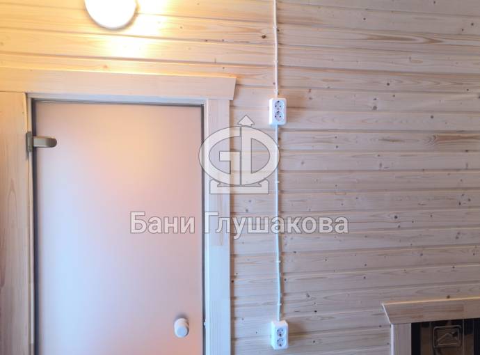Входит в стоимость. Включает светильники в каждом помещении, вводный автомат, негорючий провод в парную, розетка в комнате отдыха (в банях-бочках розетка устанавливается по требованию).
