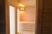 Можно установить один или более светильник у входной двери снаружи, подробнее по ссылке, в комплект входит покраска его в цвет окантовки бани, подключение на отдельный выключатель, светодиодная лампа. Стоимость 1700 рублей за штуку
