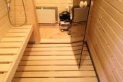 Можно и нужно заказать в парной пластиковый пол во всю парную с деревянными трапиками, Ссылка на фото и видео