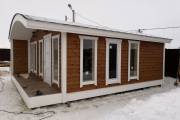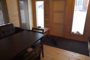 Обычно как происходит: мы разрабатываем базовый проект бани, строим экспериментальный образец по себестоимости, дожидаемся отзыва клиента. А дальше уже получаем запросы на серийное строительство. Но, как правило, каждый клиент вносит долю творчества в базовый проект. Так на основе стандартной перевозной бани «Бурже» появилась эта роскошная баня-дом с дровяником под общей крышей, который расположен с задней стороны.