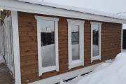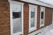 Отделка бани имитацией под наклоном 45 градусов, под окнами и над ними делаются металлические вставки как на наших барнах, посмотреть барны можете по ссылке каталог барнов.