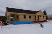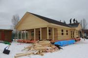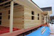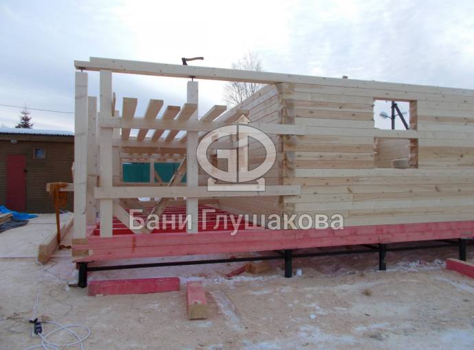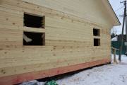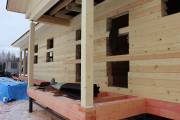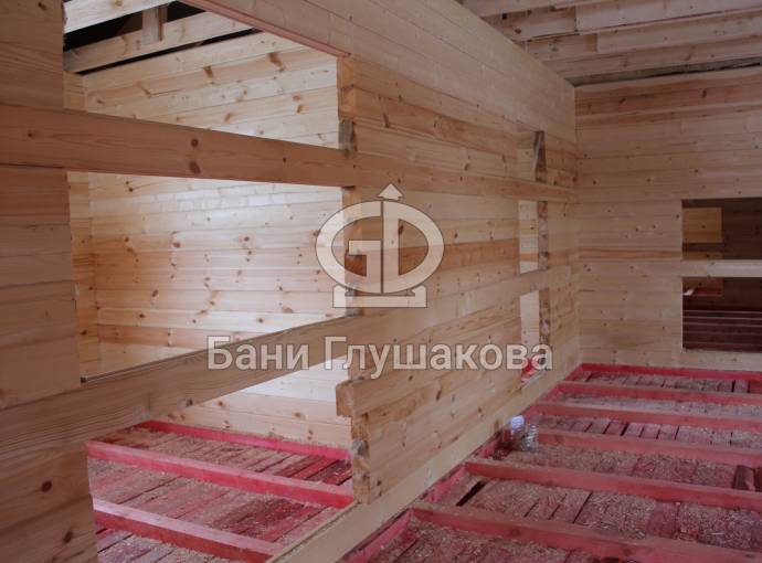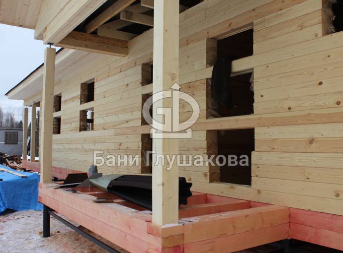 • в дверных и оконных проемах пока еще виден наш знаменитый профиль с наплывом (там еще можно заметить утеплитель между венцами);