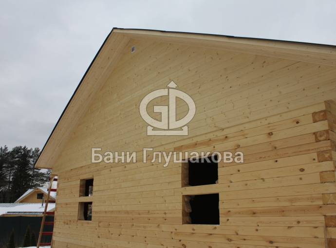 Мы обшиваем только сухой вагонкой или имитацией бруса. В копеечной стройке нет такого понятия как сухой материал для наружных работ. Еще раз — кто не посмотрел видео, то на 11-й минуте ваши фронтоны вы можете посмотреть тут.