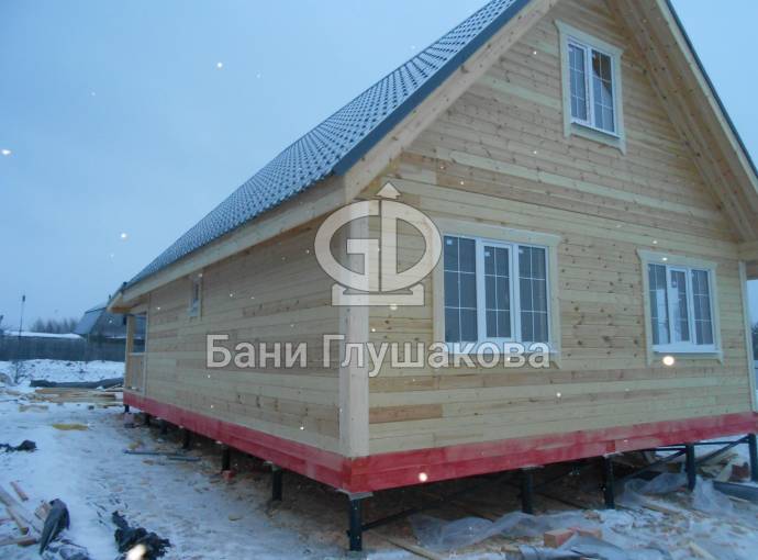 Строили по-глушаковски очень аккуратно, тщательно и никуда не торопясь. Со дня монтажа фундамента до отделки под ключ прошло 49 дней.