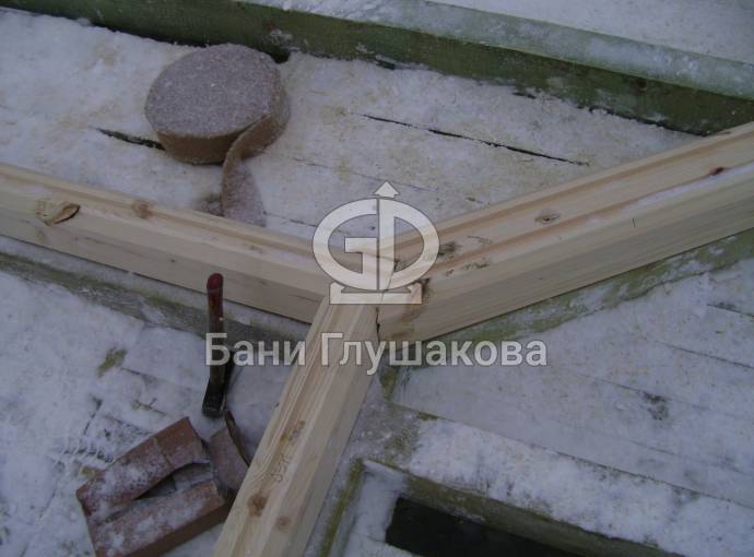 Соединение угловой происходит в теплый угол, примыкающий брус стыкуется с помощью ласточкина хвоста
