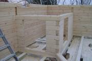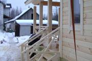 Если объект двухэтажный, то изготавливаем лестницу из строганного бруса. Ступени из специальной клееной доски. Перила настоящие, круглые с точеными балясинами (страница с фото наших работ с лестницами).