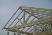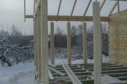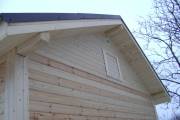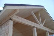 По уму сделаны свесы крыши, вода затекать не будет, а значит не будет проблем с преждевеременным износом конструкции. С торца установлены брусовые балки в типично финском стиле. Смотрится очень красиво.