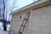 Кровля делается не только с широкой свисающей частью, но и толстой, торцы кровли отделываются не вагонкой,а сухой строганной доской 19х145 что придает вашей постройке красивый богатый вид