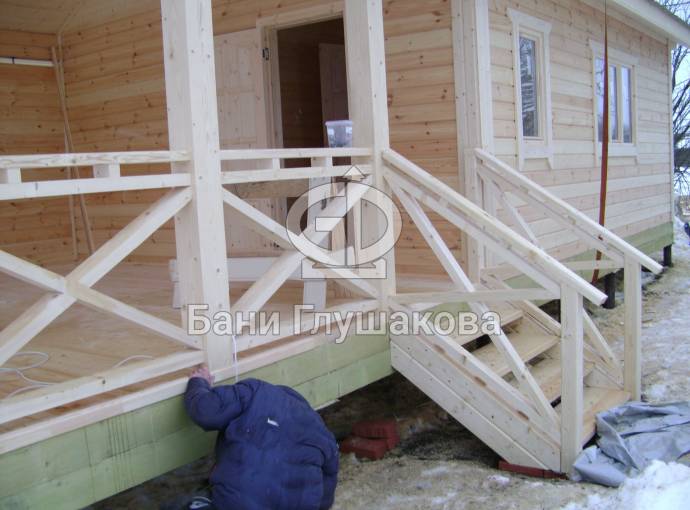 Сделаем красивый вариант по вашему желанию (если есть терраса), очень не плохо смотрится вариант крест накрест с двойной горизонтальной перемычкой, как на фото этой бани (посмотреть по ссылке), если вы искренне считаете что в найденной дешевой цене кто то будет вам делать что то подобное, то вы ошибаетесь, на 27й минуте видео вы увидите то про что я говорю (смотреть видео)