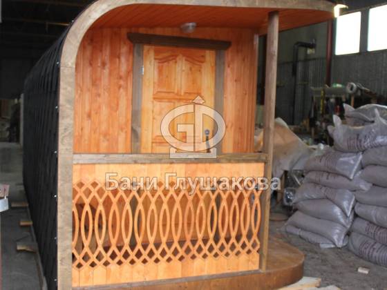К заказу доступны различные модификации: цельные бани, с террасой, выносом топки на улицу и любыми другими конструкционными изменениями по индивидуальному проекту.