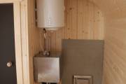 Входит в стоимость. Включает светильники в каждом помещении, вводный автомат, негорючий провод в парную, розетка в комнате отдыха (в банях-бочках розетка устанавливается по требованию).