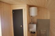 Можно установить один или более светильник у входной двери снаружи, подробнее по ссылке, в комплект входит покраска его в цвет окантовки бани, подключение на отдельный выключатель, светодиодная лампа. Стоимость 1700 рублей за штуку