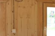 Можно установить один или более светильник у входной двери снаружи, подробнее по ссылке, в комплект входит покраска его в цвет окантовки бани, подключение на отдельный выключатель, светодиодная лампа. Стоимость 1700 рублей за штуку