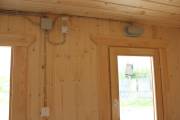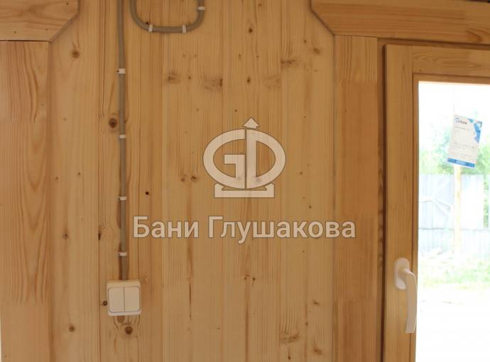 Входит в стоимость. Включает светильники в каждом помещении, вводный автомат, негорючий провод в парную, розетка в комнате отдыха (в банях-бочках розетка устанавливается по требованию).