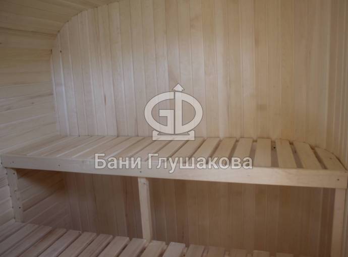 Можно сделать спинку из составных элементов на изогнутой стене бани, подробнее посмотрите перейдя по ссылке