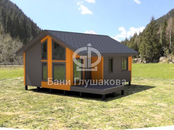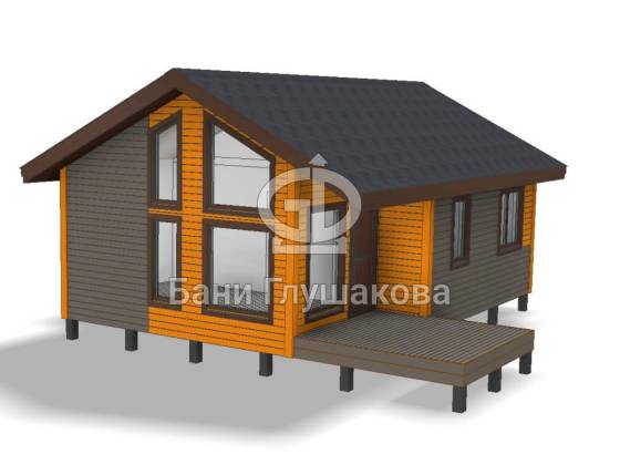 Каркасный дом с панорамными окнами 6х8