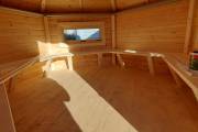 Данная баня стоит как выставочный образец и будет продана лишь по прошествии года, Можете присматриваться к ней и просить ее забронировать со скидкой.