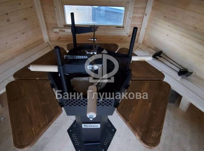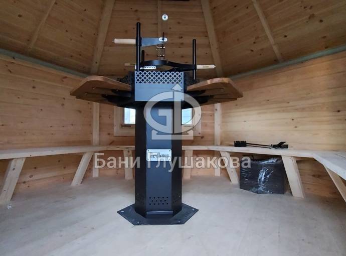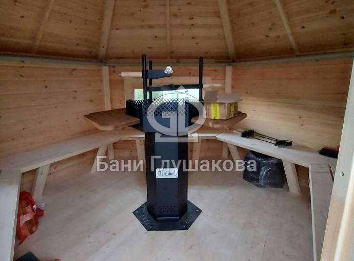 В данный момент гриль домик без печи, скоро произведем установку гриля, дверь может быть и наверное должна быть с окном.