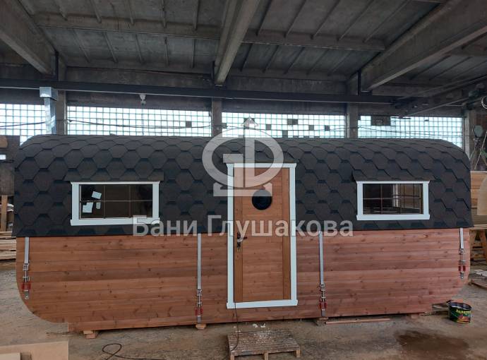 Готова ехать на выставку баня «Карета» из лучшего материала, который есть в наличии — термомодифицированной доски.