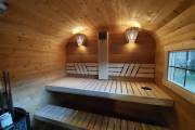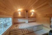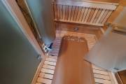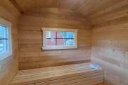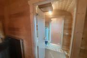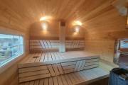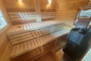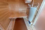 Размер 2,2х6 метров. Внутри 3 помещения: комната отдыха, помывочная и душ. Комплектация топ: обливное устройство «Обливасту», вентиляция «Второе дыхание» и «Димасту», металлический экран вокруг печи и удобные клапаны-задвижки. В общем, эта банька собрала в себе все наши последние улучшалки.